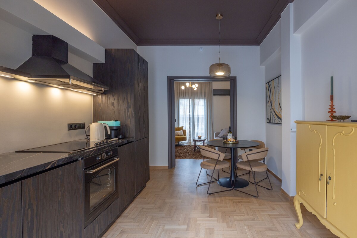 Appartamento di 60 m² incredibilmente elegante al primo piano di un edificio situato in un quartiere invidiabile vicino all'Hilton Hotel di Atene, nel centro della città. L'appartamento si trova a pochi passi dai Giardini Nazionali, dai Musei e da piazza Syntagma, e a 2 minuti a piedi dalla metropolitana. Con una fantastica disposizione dopo la sua recente ristrutturazione totale (giugno 2018), la cucina/zona pranzo, il soggiorno e le zone notte sono elegantemente "separate", creando l'impressione di uno spazio continuo.