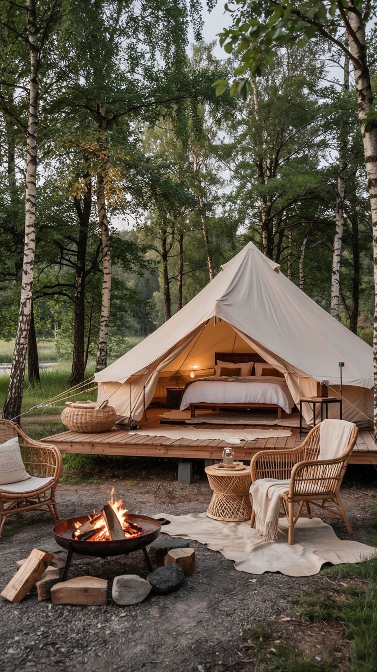 Namastay Glamping Retreat – Nature, Wellness & Cozy Luxury in the Shuswap. Experience the magic of slow living, grounding energy, & elevated simplicity. An off-grid wellness escape. ✨ What your stay includes Luxury canvas bell tent with comfortable beds and cozy linens Styled interiors with warm lighting and natural textures Shared outdoor spaces for relaxing & reconnecting Fire pit gathering area for evenings under the stars Peaceful forest setting just minutes from the Shuswap Lake