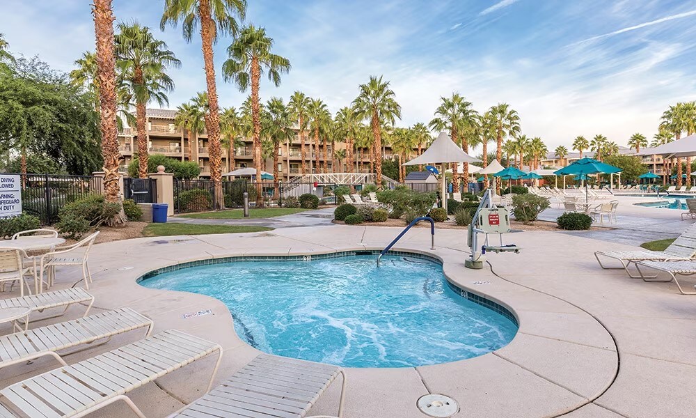Vacanze con stile nel nostro resort premium a Palm Desert Crea ricordi indimenticabili alle Desert Springs Villas II di Marriott. Con un servizio pluripremiato e una posizione strategica a Palm Desert, in California, vicino alle Bermuda Dunes, il nostro resort premium per le vacanze (multiproprietà) ha tutto il necessario per una fantastica vacanza in famiglia. Se vuoi esplorare, il nostro resort si trova a breve distanza dal Parco nazionale del Joshua Tree e dalla Palm Springs Aerial Tramway.