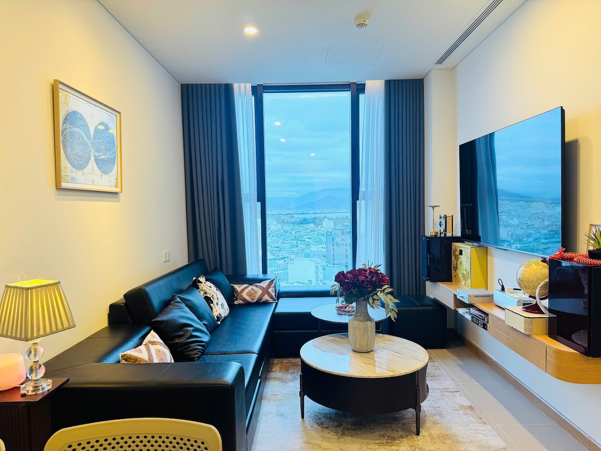 Un appartamento accogliente e moderno situato al 14° piano di un edificio in posizione privilegiata. Dall'appartamento, si può vedere il fiume Han, il ponte Thuan Phuoc e soprattutto ammirare i fuochi d'artificio in occasioni speciali. L'appartamento si trova a un piano alto, quindi offre aria fresca e brezza fresca. Nel pomeriggio, ci si può sedere su una sedia a sdraio sul balcone per godersi la brezza e vedere il tramonto: è fantastico per rilassarsi. L'appartamento è completamente arredato e la cucina è completamente attrezzata per cucinare pasti abbondanti.