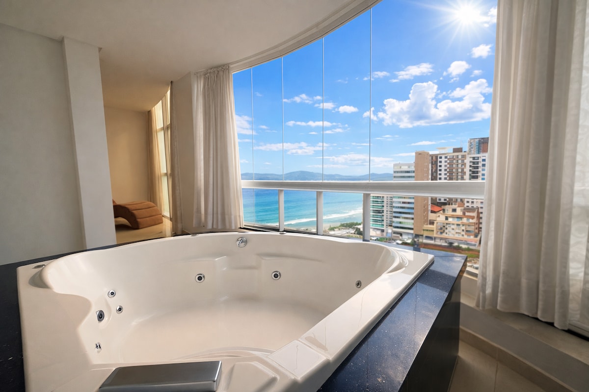 Live a complete and premium stay at Meia Praia! This apartment features a suite with a hydromassage tub and a bedroom with air conditioning, a full kitchen, and a living room with a Smart TV. Leisure is on the balcony with a barbecue and partial beach view. With the sea just 60 meters away, your experience in Itapema will be one of total comfort and ease. Book your stay and come enjoy the luxury and convenience in SC!