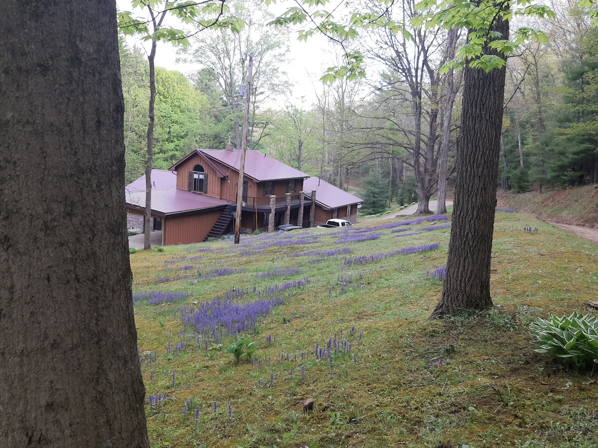 Questo bellissimo chalet è nascosto su una collina boscosa, molto privato, accogliente e confortevole, con splendidi paesaggi tutt'intorno. È il luogo perfetto per una fuga romantica o per rilassarsi con un paio di amici, lontano dai rumori della città. Il cottage si trova vicino alla contea degli Amish... Ci sono molti negozi e ristoranti a breve distanza in auto, con una spaziosa vasca idromassaggio per 7 persone a disposizione degli ospiti tutto l'anno, nonché un camino esterno e interno per quando il tempo è invernale.