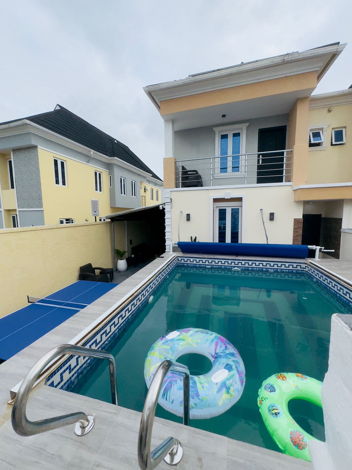 Relax with the whole family at this peaceful place to stay. The house is a gated court in a secure metropolitan neighbourhood. It is situated within an outer manned estate for guaranteed security This serviced terrace duplex is 3-minute drive from the Lagos Business School, a minutes from Pepperoni Cinemas & restaurant and 15-minute drive from Santa Cruz, Laguna and Atican beaches. Guaranteed power supply, no generator noise nor fumes, and serene neighbourhood that is a home away from home.
