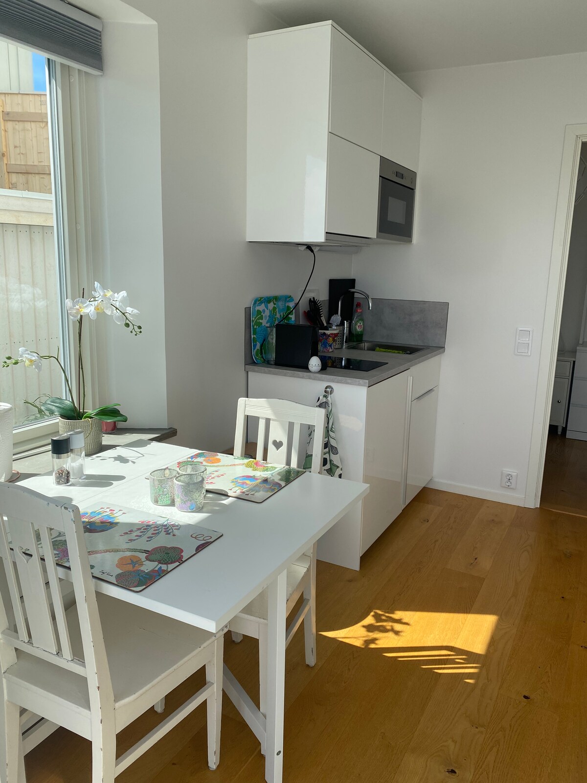 Alloggio luminoso e fresco in un affascinante cortile, costruito nel 1886, vicino a Skärhamn. Appartamento con grandi finestre su tre lati e tre metri di altezza del soffitto. Recentemente ristrutturato, con il vecchio fascino conservato, ma con caratteristiche moderne - cucina completamente attrezzata, lavatrice, bagno con doccia, wc e lavabo - piastrelle e riscaldamento a pavimento. Camera da letto ariosa e tranquilla con letto matrimoniale. Patio e accesso al giardino. Bella natura e sentiero escursionistico a portata di mano. 700 m dal mare 2 biciclette da prendere in prestito