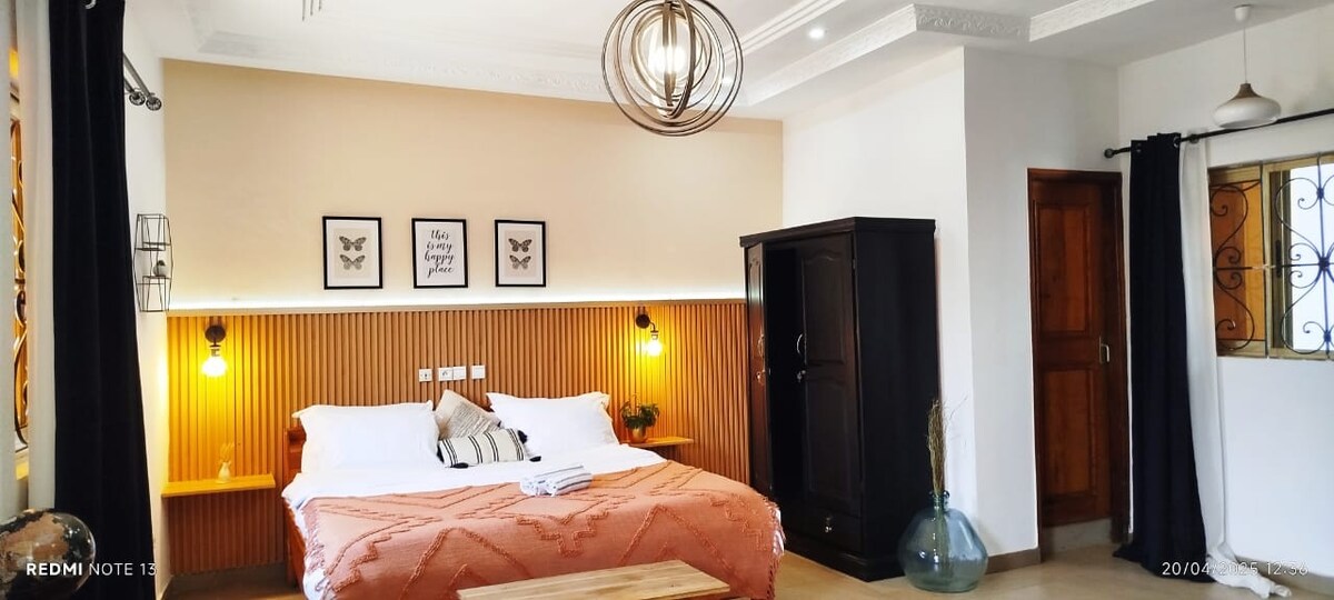 Appartament entier : Chambre, salon , salle de bain et cuisine à HEDZRANAWOE à 5 minutes à voiture de l’aéroport de Lomé, emplacement privilégié dans le centre-ville, très proche de la route principale,son confort et sa décoration accueillante, ses vues panoramiques la nuit depuis le toit et l’attention de l’hôtesse amicale et attentive sont au rendez-vous. Tout cela vous permettra de profiter d’une expérience d’hébergement unique et inoubliable lors de votre visite de la ville de Lomé.