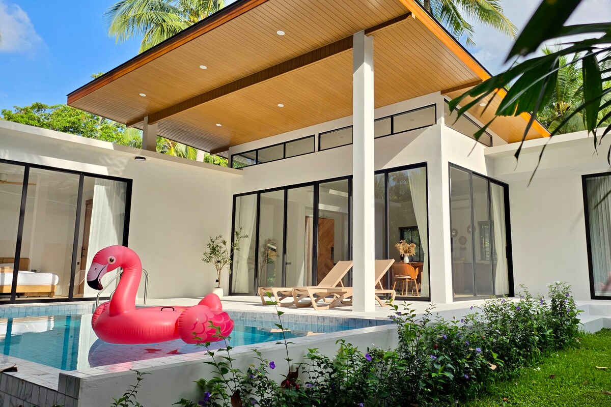 Fuga in paradiso sul tuo balcone sopra la giungla con vista sulla baia di Hin Kong. Vista mozzafiato da ogni angolo di questa villa splendidamente progettata con 2 camere da letto e 3 bagni. La camera da letto padronale su due livelli ha alti soffitti e una vasca da bagno con vista sul Parco marino nazionale di Ang Thong. La cucina e la zona giorno si aprono sul giardino e sulla piscina di acqua salata. Letti comodi e lenzuola di alta qualità ti aspettano al tuo arrivo. I migliori ristoranti e bar sono nelle vicinanze. Tutto il necessario per una vacanza perfetta in paradiso
