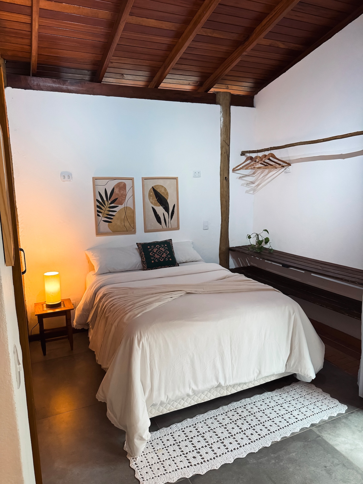 Casa rustica sulla spiaggia di Vermelha do Centro, a 3 minuti dal mare, in una via tranquilla. Solarada e circondato da un giardino tropicale, situato nel cuore della Foresta Atlantica. Ci sono 3 camere da letto, 1 suite. Stanza integrata con la cucina. Cucina con frigorifero, piano cottura, frullatore, pentole, teglie e altri utensili necessari per preparare i pasti. C'è una connessione internet in fibra ottica da 350 MB. TV smart 43" È necessario portare lenzuola, asciugamani e altri articoli per uso personale. Ci sono cuscini e coperte.