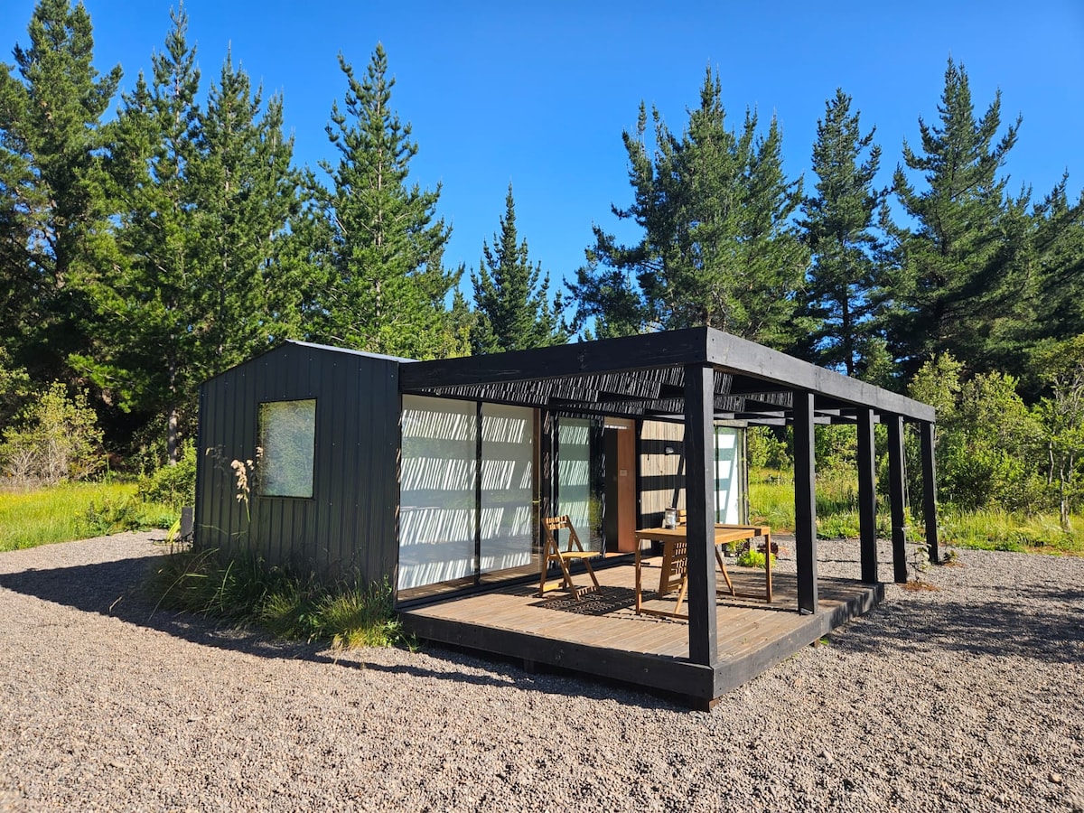 Cabaña para 2 personas rodeada de bosques, ideal para una escapada en busca de tranquilidad y desconexión en la naturaleza, con noches mágicas bajo las estrellas. Cuenta con Hot Tub privado disponible 24 horas en la terraza, Wifi, Smart TV, sábanas y toallas, parrilla a gas, Bosca, leña, cocina completamente equipada (vajilla completa, refrigerador, microondas, horno eléctrico, hervidor, tostador, cafetera francesa), parlante bluetooth y estacionamiento privado. A 15 minutos de Puertecillo.