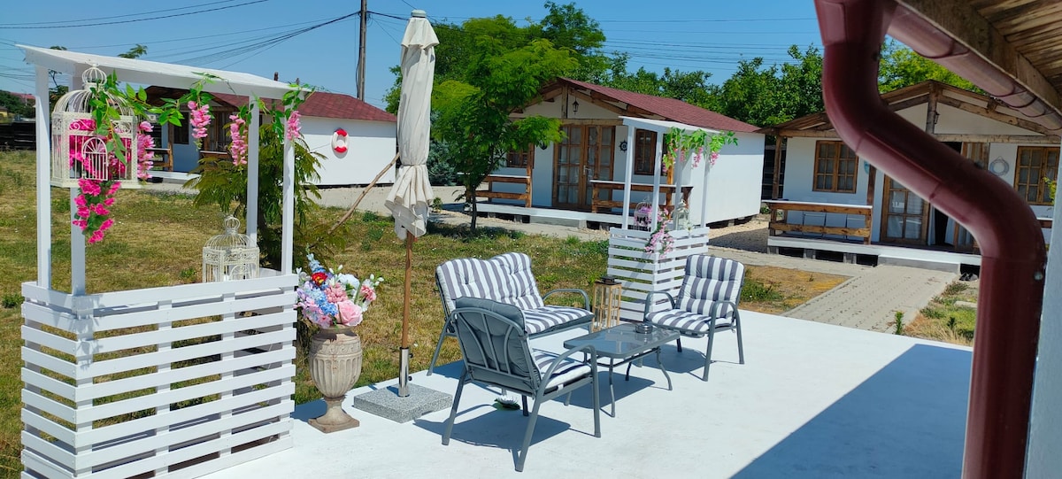 Alloggi in riva al mare. Complesso chalet di lusso a 10 minuti di auto dalla spiaggia di Eforie e 5 minuti da Techirghiol. Gli spazi comuni sono solo la cucina e la piscina. Offriamo parcheggio, piscina, zona spiaggia con lettini e ombrelloni, parco giochi per bambini, cinema all'aperto, barbecue, lavatrice e cucina completamente attrezzata. Il complesso è attraversato da una piccola acqua che scorre, che oltre al pittoresco paesaggio, offre anche ai pescatori dilettanti la possibilità di pescare una carpa o un aereo.