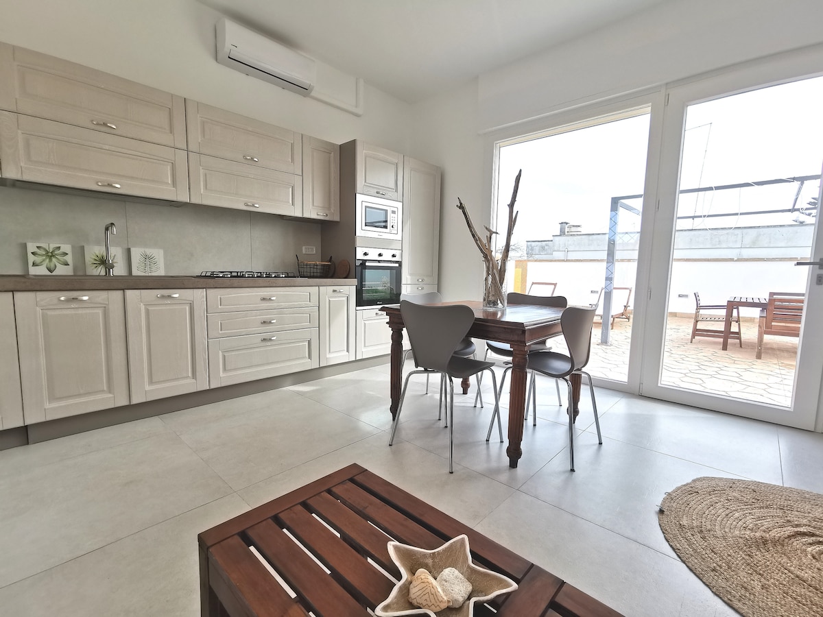 Attico sul mare con terrazza panoramica e vista ininterrotta della baia sabbiosa di Rivabella Padula Bianca fino al golfo di Gallipoli. È situato in un piccolo residence con ascensore ed accesso diretto in spiaggia, a ridosso delle dune di spiaggia bianca e del mare cristallino con fondale basso. Il luogo perfetto per rilassarsi sulla spiaggia e godersi la natura.