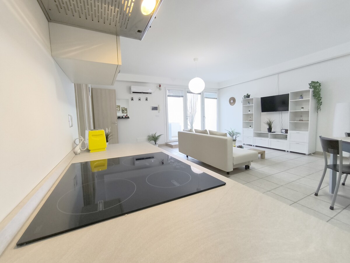 Appartamento con ampio terrazzo vista mare. Due camere da letto per un totale di quattro posti letto.Dotato di due camere da letto, una con letto matrimoniale ed una con due letti separati che all'occorrenza possono essere uniti. Il tetto è in legno coibentato, che oltre a rendere l'abitazione perfettamente isolata, crea insieme al parquet invecchiato, un'atmosfera calda e vintage allo stesso tempo. Il soggiorno-cucina ha uno splendido angolo cottura. Dotata di un ampio terrazzo vista mare.