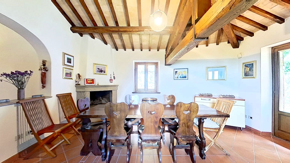 Ti diamo il benvenuto nella nostra bellissima villa italiana, progettata da un famoso scenografo italiano. Vista panoramica senza ostacoli sulla campagna umbra. Goditi il relax completo, la privacy e la pace con amici e familiari a bordo della piscina di 12 metri o sotto la quercia di 200 anni. Grande cucina in stile rustico, orto aromatico, forno per pizza e ampio giardino con ulivi e fichi. Situata a Toscolano, in Umbria, con due ottimi ristoranti e un mercato alimentare, è perfetta per esplorare la Toscana meridionale e l'Umbria.