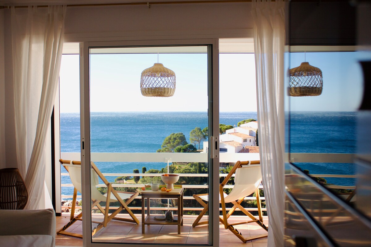 Un'esperienza esclusiva sul lungomare con una vista eccezionale in un affascinante appartamento appena ristrutturato nel 2023 con tutti i comfort moderni (cucina completamente attrezzata, aria condizionata, wifi, Netflix, biancheria da letto di qualità, ecc.) La sua vista unica e l'ampio balcone arroccato sul mare vi regaleranno ricordi indimenticabili del suono delle onde. Sul sitio: piscina, garage privato. A pochi passi: supermercato, bar-ristorante, sentieri escursionistici.