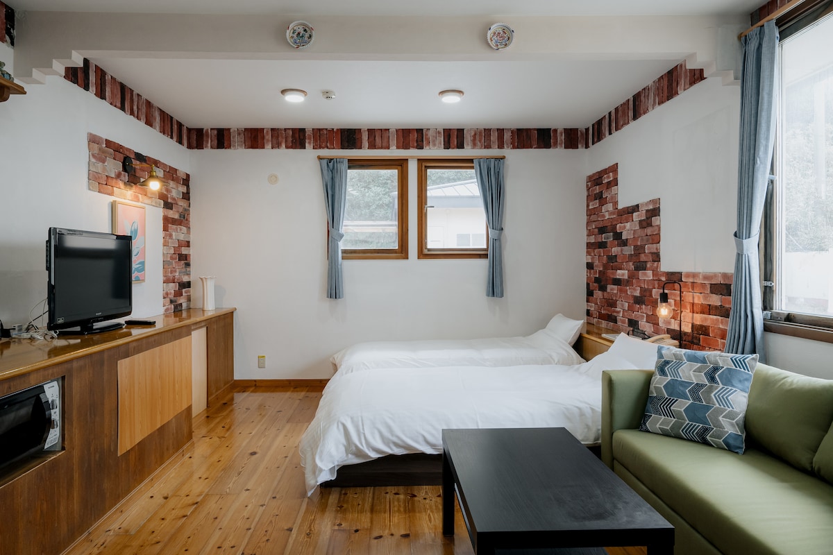 Si tratta di una casa tradizionale giapponese in affitto privata che il proprietario, “JP”, appassionato di bricolage, ha ristrutturato personalmente, immaginando uno spazio abitativo ideale, all'interno di una casa tradizionale di 150 anni. Forse il punto di forza maggiore di questo alloggio è la sua “sauna a uovo” unica nel suo genere. Si tratta di una sauna completamente fai da te, progettata e costruita interamente da JP, con una forma unica che consente al calore di circolare in modo naturale.Concediti un’esperienza di sauna che puoi vivere solo qui, avvolto dal dolce calore della stufa a legna. La camera è dotata anche di un tradizionale focolare giapponese incassato, tipico di un antico casale kominka. Puoi vivere lo stile di vita tradizionale giapponese, ad esempio gustando uno stufato intorno all’irori (focolare tradizionale) o grigliando degli spiedini. *Ti preghiamo di portare con te i tuoi utensili da cucina, come ingredienti e spiedini. La locanda si trova in una frazione tranquilla chiamata Kobusa, incastonata tra le montagne della città di Misasaki, nella prefettura di Okayama. Proprio nelle vicinanze si trova il villaggio di Nishi-Awakura, che sta attirando l'attenzione come villaggio incentrato sulla rivitalizzazione e sul reinsediamento a livello regionale, e la zona è caratterizzata da un ricco paesaggio naturale di “satoyama” (aree boschive tra campi coltivati). Goditi un soggiorno rilassante lontano dalla frenesia della città, immerso nella natura e in un ambiente accogliente e curato nei minimi dettagli.