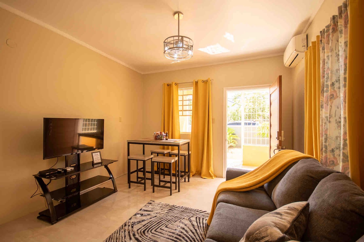 We are fully operational post Hurricane Melissa with power, water & wifi Unwind at this stunning ocean-view studio only 5 minutes away from the heart of Ocho Rios. The studio is freshly renovated with granite counter tops in the kitchen and bathroom, and porcelain tile throughout for a luxurious yet homey feel. Enjoy the vast ocean view and dip your toes in the water only a few steps out from the patio. This studio is the perfect place for relaxing, listening to the ocean and enjoying the breeze