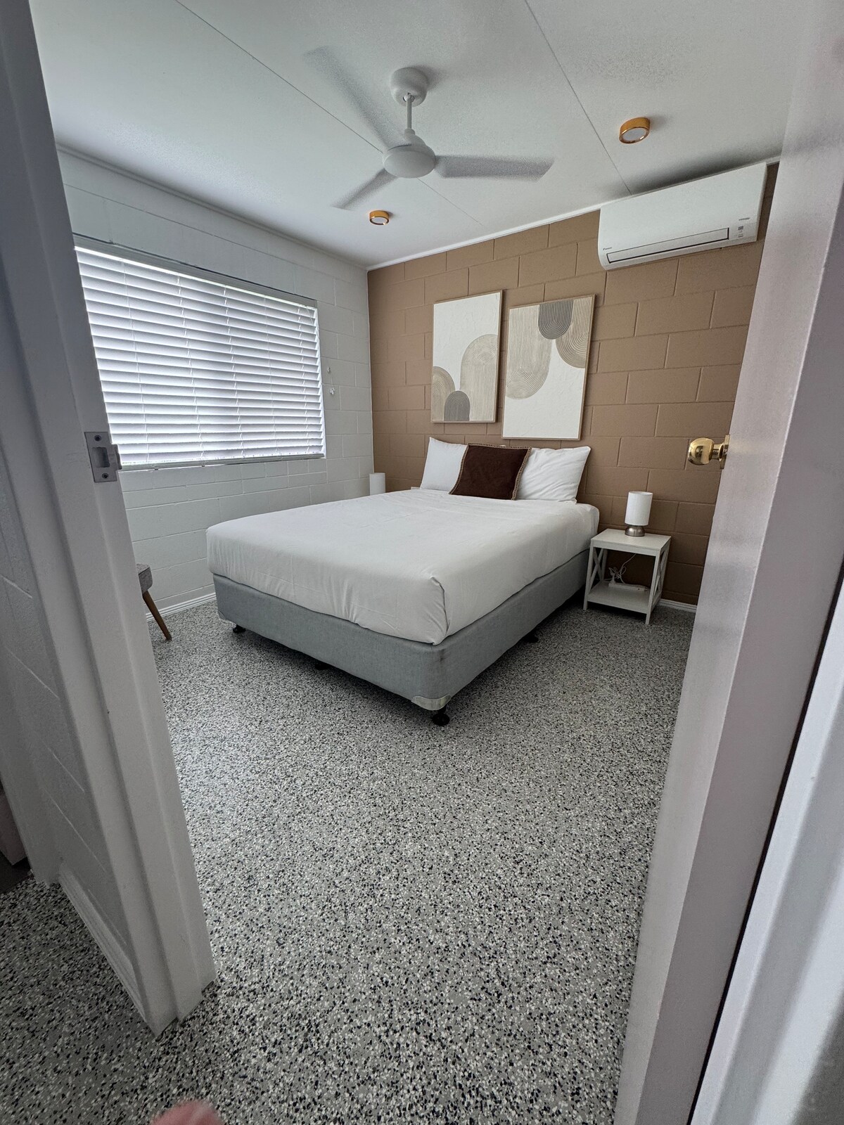 Svegliati con la luce del sole filtrata, la vista sulla piscina e il canto degli uccelli in questo appartamento pieno di luce. Elevato tra le palme, lo spazio è luminoso, arioso e confortevolmente privato: un rilassante rifugio tropicale. Situato nella verdeggiante Railway Estate, si trova a pochi passi dal QCB Stadium e a meno di 10 minuti di auto dalla città e dallo Strand. L'intero appartamento è a tua disposizione, con accesso privato, Wi-Fi, cucina ben attrezzata, zona giorno con Netflix, camera da letto matrimoniale e bagno privato con doccia a pioggia e lavatrice.