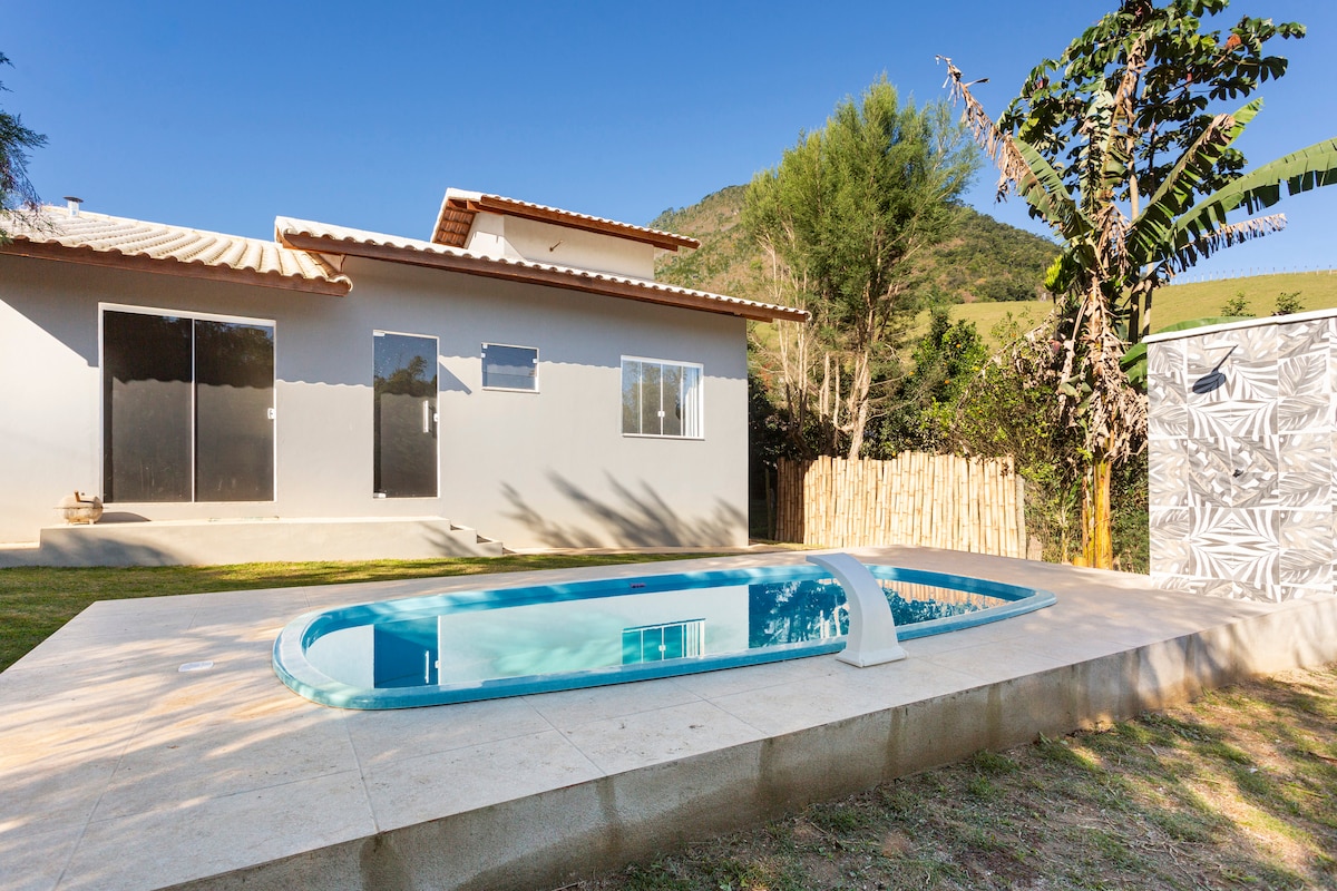 Ti diamo il benvenuto a @nossocanto_serrarj. Goditi il fascino di questo chale, esclusivo con il suono del fiume, completo sotto tutti gli aspetti, con caminetto interno ed esterno, piscina, barbecue, wifi, smart tv, biancheria da letto, lavatrice e asciugatrice e persino un cielo stellato per le serate del cielo più pulito.