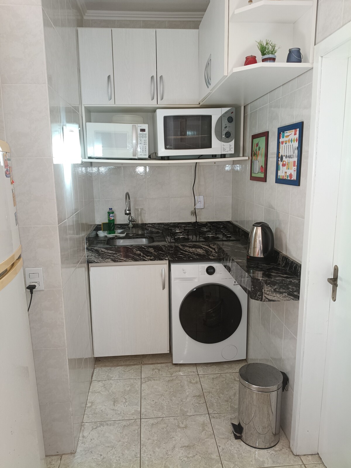 Apartamento mobiliado, a uma quadra do mar. Localizado no 3º andar (sem elevador), ideal para quem busca simplicidade e proximidade com a praia. O condomínio conta com áreas de lazer, como churrasqueiras, salão de festas, quadra de esportes e uma pracinha com jardim arborizado e bancos. Este é um espaço prático e funcional, bem próximo a restaurantes, lojas e farmácias, e oferece 2 vagas rotativas de estacionamento.