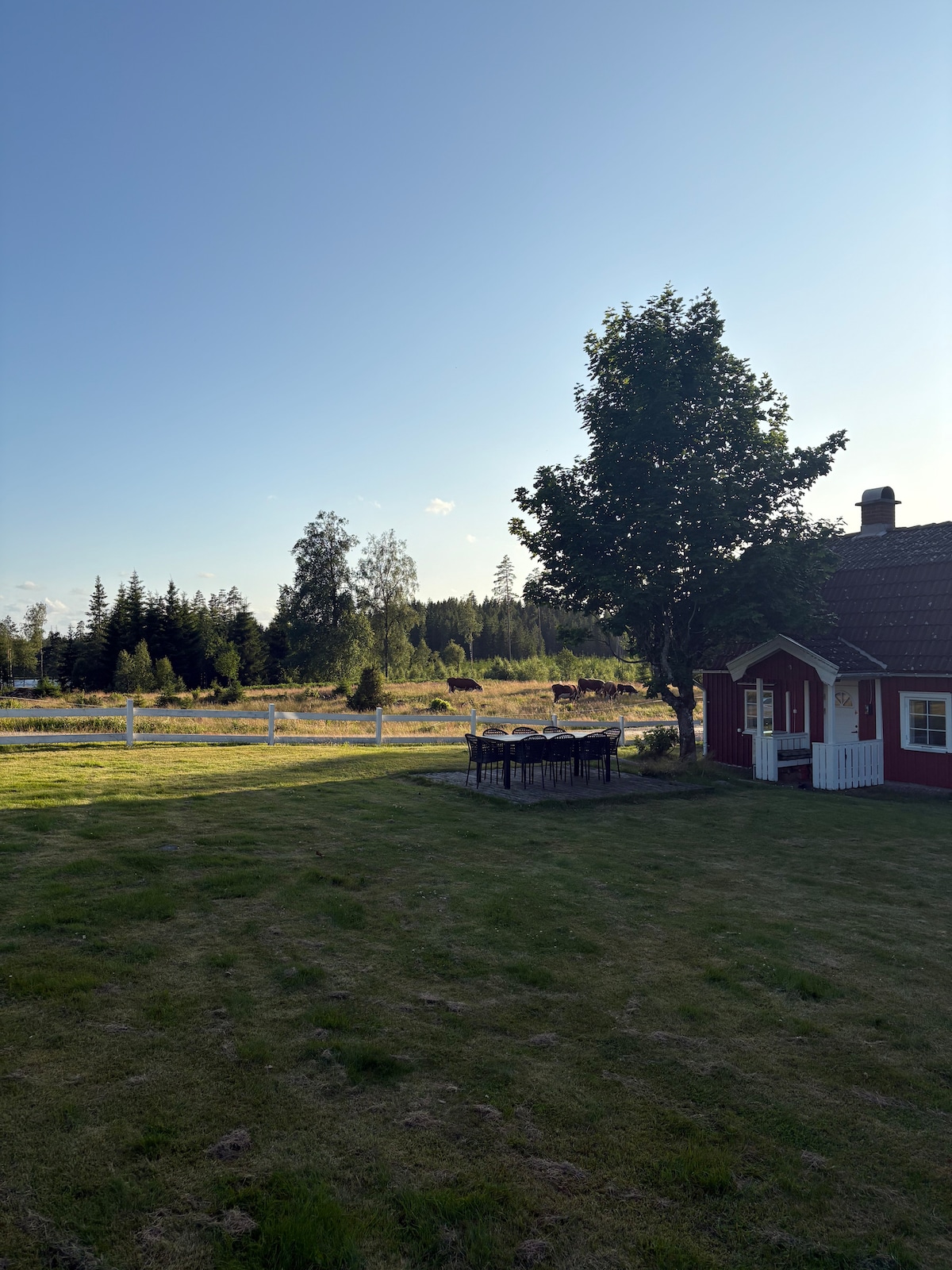 L'alloggio si trova in una casa in campagna con grandi spazi verdi e vicinanza alla natura. Nel cortile c'è una fattoria vivente e un negozio agricolo. Natura, boschi e strade sterrate invitano a passeggiate e gite in bicicletta. La fattoria si trova a 500 metri dalla strada statale 27 - comoda per chi è di passaggio. A 2,5 km dall'alloggio si trova Limmared, famoso per i mercatini delle pulci e dell'antiquariato. Ci sono il Glasparken (un grande parco giochi e di attività), la Glasets hus, un negozio di alimentari e ristoranti.