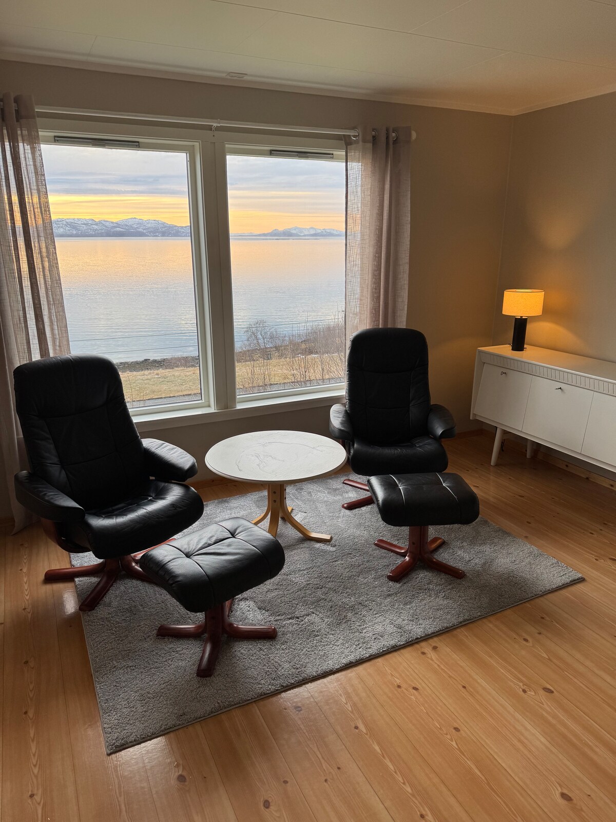 Una baita accogliente e completamente attrezzata con un tocco personale e una vista fantastica. Perfetto per le coppie in cerca di una fuga romantica o per le famiglie che desiderano un soggiorno confortevole e indimenticabile. Il soggiorno include l'uso di 2 paia di racchette da neve, biciclette, canne da pesca e attrezzatura da caffè di alta qualità. Situata proprio nel cuore del villaggio, la baita offre sia privacy che uno scenario spettacolare. Goditi il sole di mezzanotte in estate e l'aurora boreale in inverno, tutto dal comfort di questo moderno e accogliente rifugio.