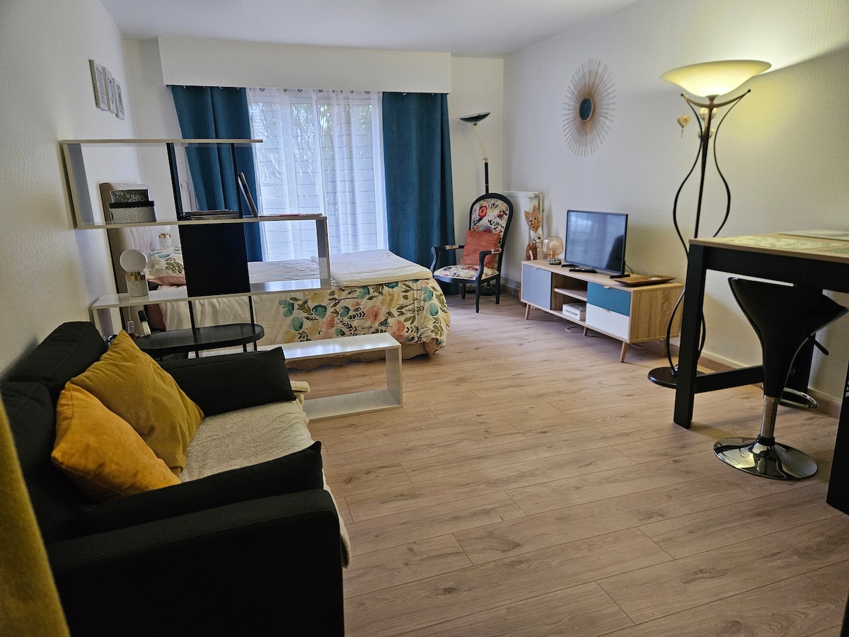 MONOLOCALE VICINO AL CENTRO OSPEDALIERO/2 PERSONE/WIFI. Situato vicino al centro della città di Périgueux in un ambiente tranquillo, questo appartamento completamente attrezzato è ideale per un viaggio di lavoro, un soggiorno con gli amici o la famiglia. Posto auto privato. Il Centro Ospedaliero è a 50 metri. Fermata dell'autobus a 100 metri. Inter-mercato a 3 minuti di auto - panettiere e ristoratore a 300 metri
