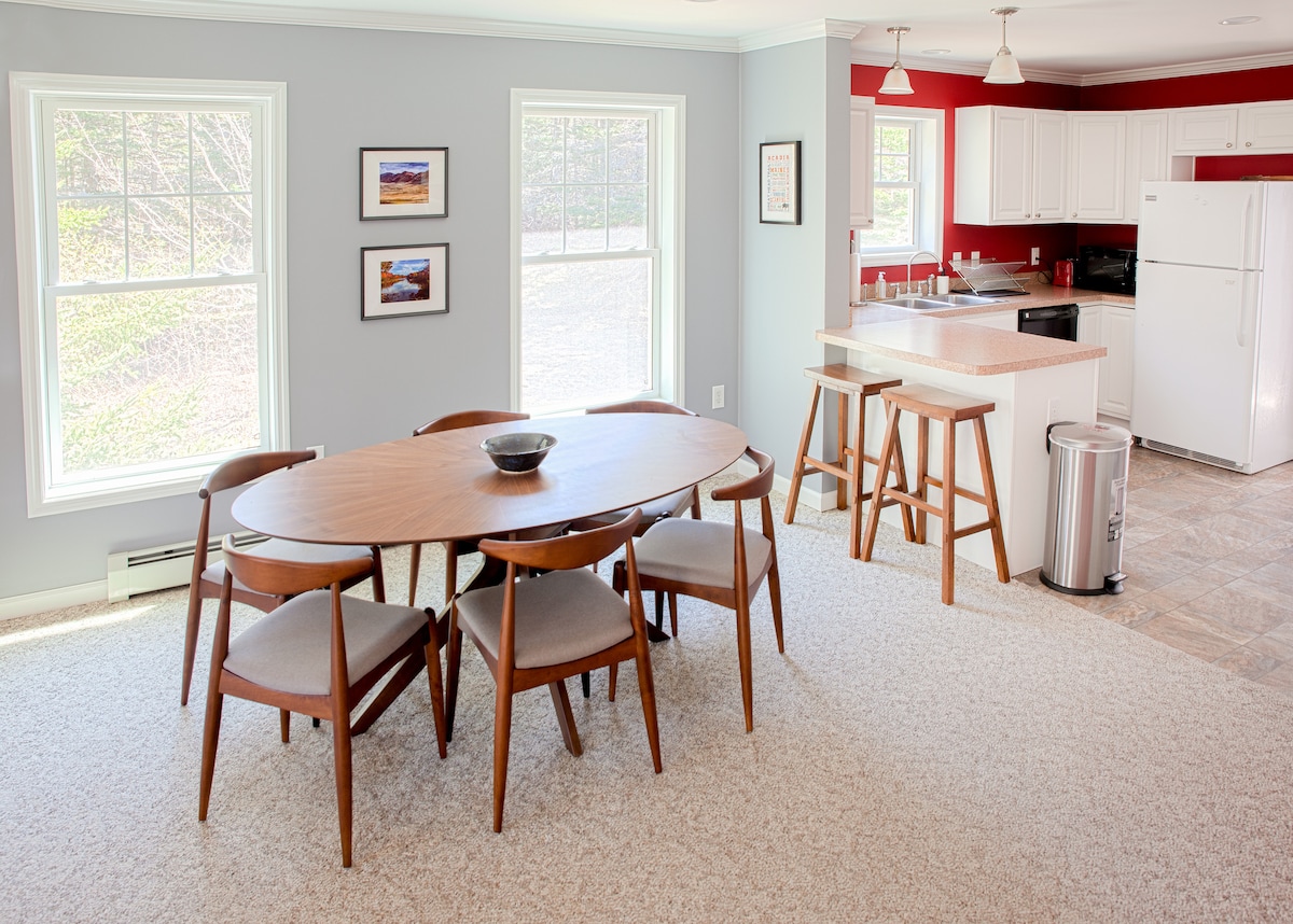 Combatti l'inflazione con un prezzo ragionevole Vacanza nel Maine. Prezzi bassi, ottimo rapporto qualità prezzo. Controlla le nostre valutazioni. Fogliame al massimo splendore: 14-20 ottobre Intero monolocale con ingresso privato sopra il nostro garage. Completamente arredato, con lavatrice e asciugatrice. Ambiente rurale su una strada tranquilla. Starlink High Speed WiFi/Satellite TV, cucina completa, giardini, prati e tavolo da picnic. Vicino a Camden, Rockport e Belfast, ma in campagna.