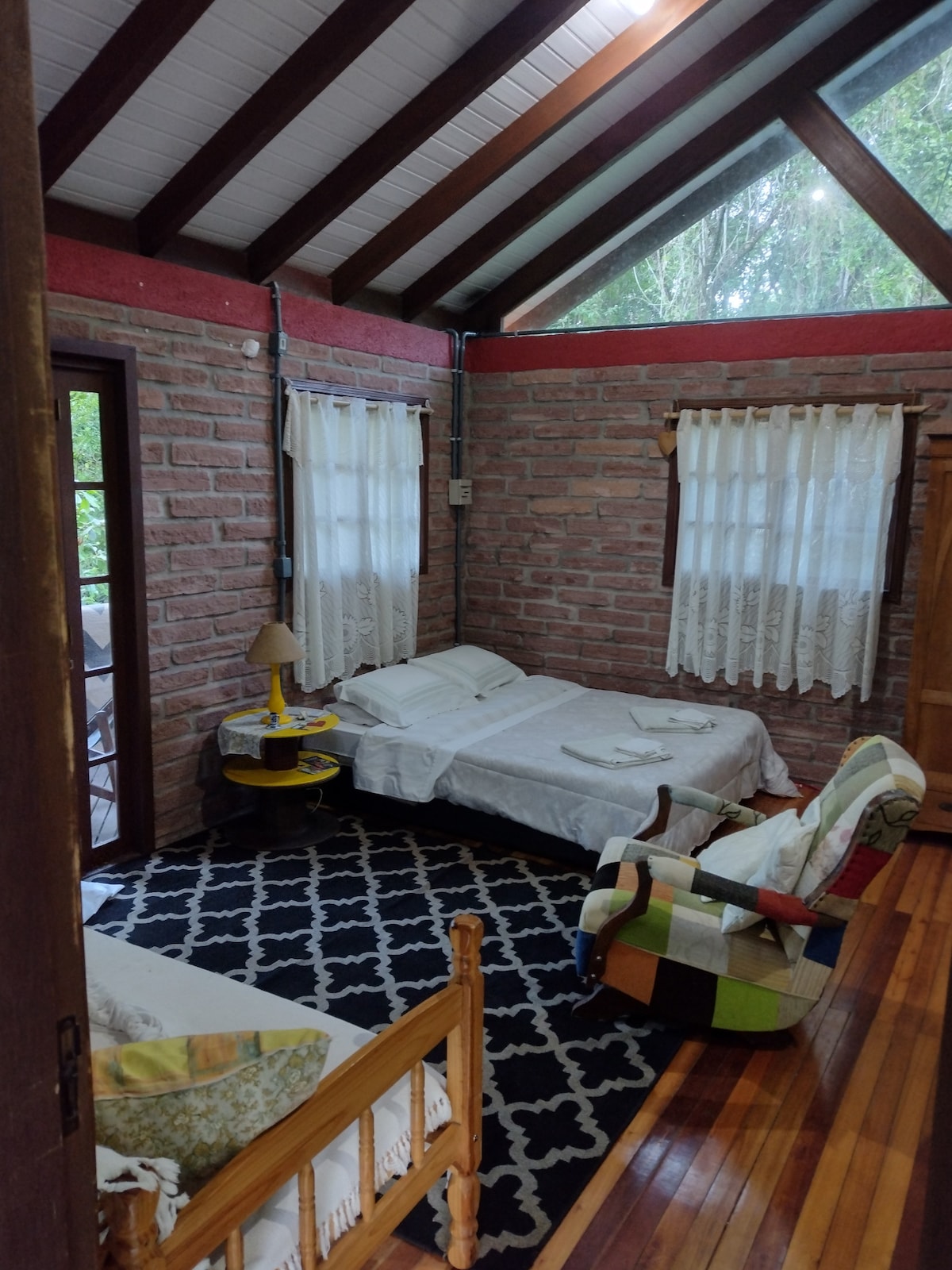 CHALET con vista sul bosco, in un paradiso ecologico e artistico chiamato Amarte a Três Coroas/RS, molto vicino al Tempio Buddista. Oltre allo chalet, si può godere di splendidi giardini, sentieri, terrazza per il tramonto sulle montagne, altalena, orto biologico, e anche avere esperienze e cure terapeutiche, se lo si desidera. Amarte è una spa per l'anima! Qui colleghiamo corpo, mente e spirito. L'acqua è pura! È uno spazio vegetariano, dove non consumiamo alcol, droghe o carne animale. Vi meritate questa PACE!