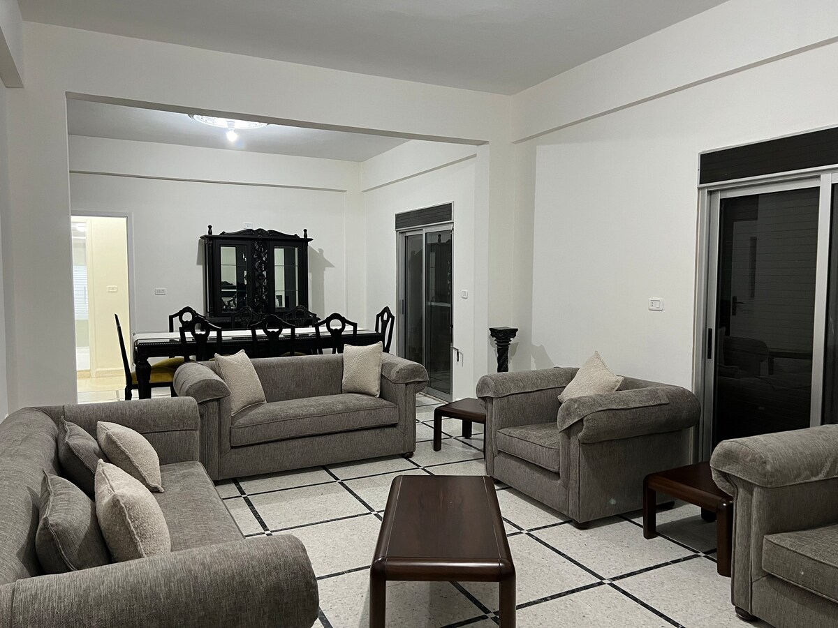 Relax with the whole family at this peaceful place to stay. Elegant fully furnished living room Clean, equipped kitchen (fridge, stove, cookware) Long balcony with full sea view 🌊 (narrow but extends across the front) Fast Wi-Fi + air conditioning Brand new furniture – super clean No elevator needed (first floor – easy access) 📍 Location: 2-minute walk to the Corniche Close to top seafood restaurants & cafes Quiet, safe neighborhood – perfect for relaxing