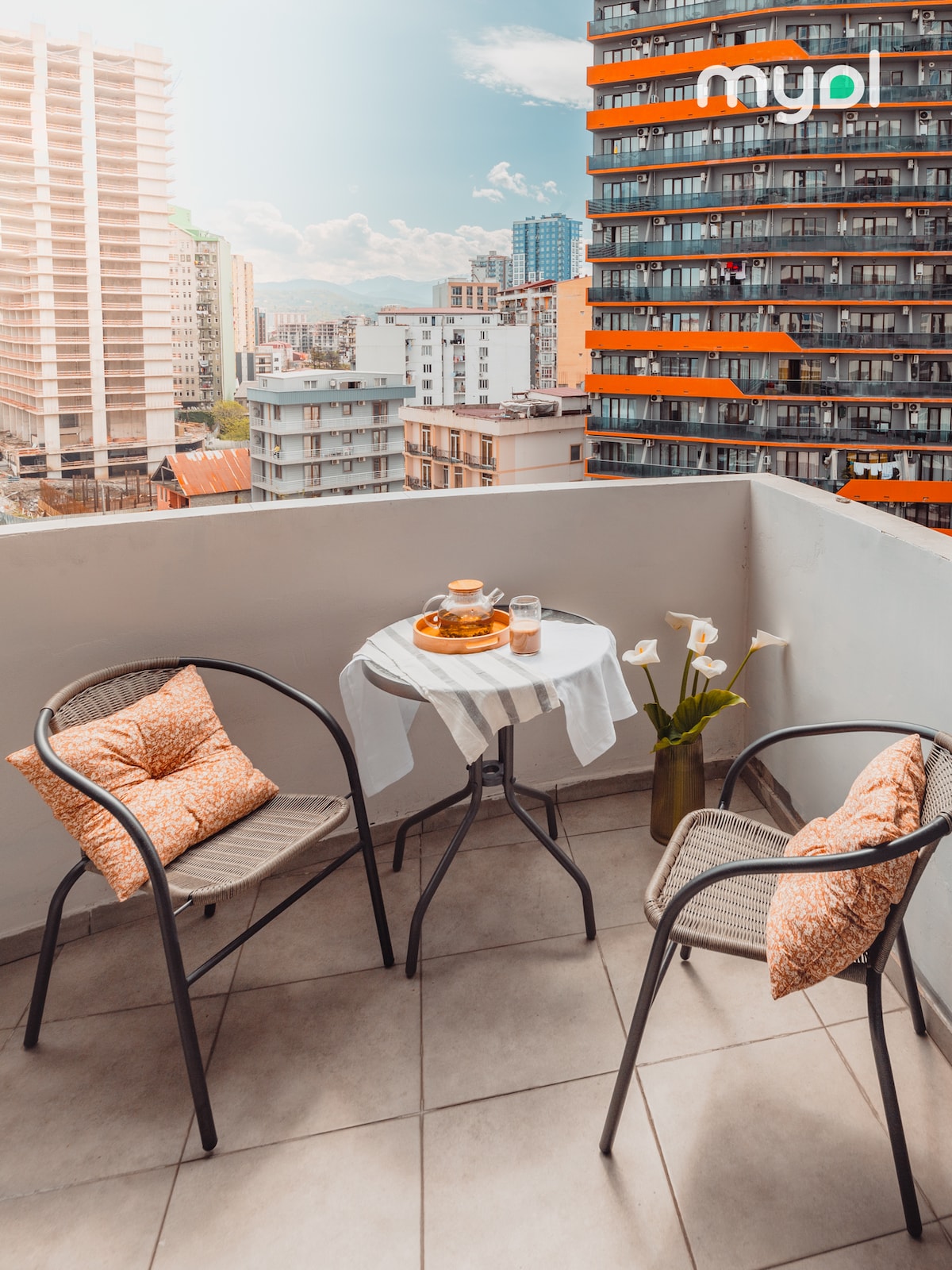 Monolocale in stile boho nel centro storico di Batumi — Torre Porta Batumi - Finestre panoramiche con vista mozzafiato sul mare, sulle montagne e sulla città - Vasca da bagno! - Pulizia e freschezza perfette! - Ottimo isolamento acustico! - Pavimenti caldi! - Molti ascensori che funzionano senza ritardi Nelle vicinanze: - Il mare, il centro storico, Piazza Europa, il viale, i ristoranti e i caffè sono a soli 5 minuti di distanza - Nelle vicinanze ci sono supermercati, farmacie, un casinò, bar con narghilè e bar - Comodo parcheggio vicino casa