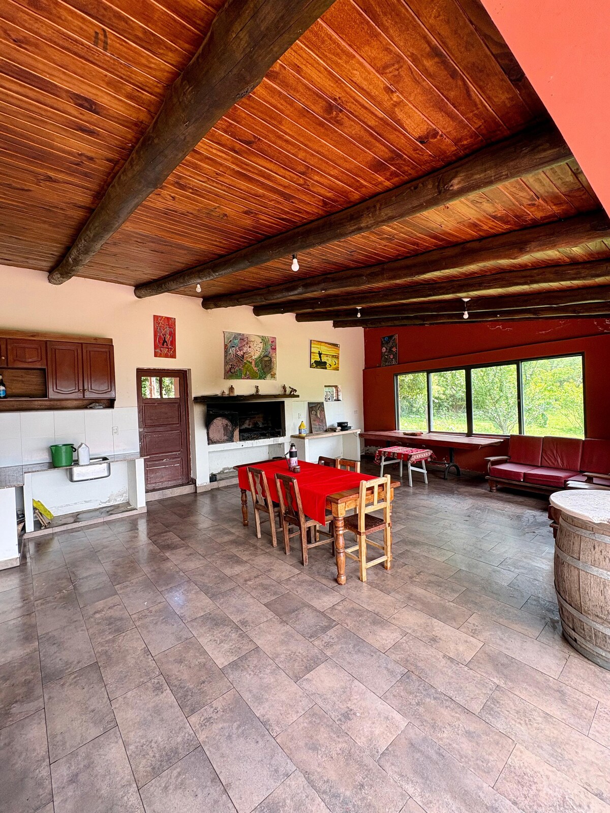 Ranch for 2 people in a 4000 square meter property, with an incredible view of the mountains of the Paleta del Pintor, in the middle of a field of crops and a corral of llamas, built in an Andean style, with local materials such as adobe, cane and stone, solar heating and efficient use of water.