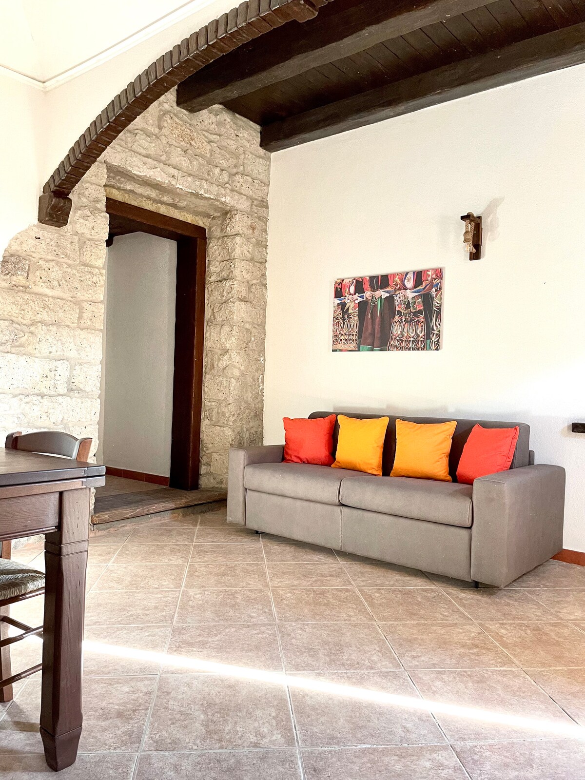 Il palazzo è incastonato nel centro storico di Tempio, "Città di Pietra", Cuore della Gallura. La casa è situata al primo piano, sopra il mio "Studiolo di Arti e Mestieri". È il frutto di un accurato lavoro di restauro e vicinissima a tutti i servizi della città. L'ingresso è molto riservato, da un androne con un'ampia scala si accede all'appartamento, composto da due grandi ambienti, cucina/soggiorno e soggiorno/letto, corridoio e bagno. Registro Locazioni Turistiche CIN IT090070C2000P6501