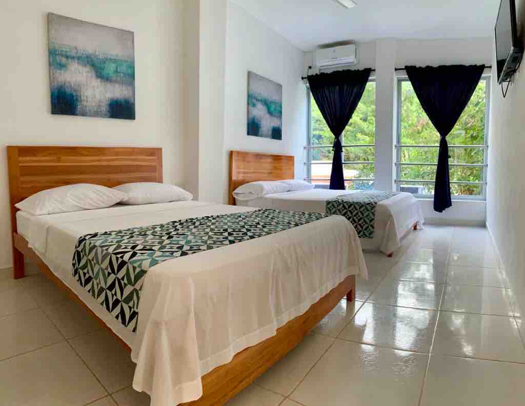 Goditi la Suite 102 con la tua famiglia, di fronte al Mar dei Caraibi. Dotato di un letto matrimoniale e due letti singoli, aria condizionata, Wi-Fi e un balcone con vista sul mare. Ideale per rilassarsi, giocare in giardino, dondolarsi su amache e condividere tramonti magici. Accesso diretto al mare, atmosfera tranquilla e siamo pet friendly. Un'oasi per riconnettersi, senza schermi o rumori, solo brezza marina e momenti che durano per sempre.