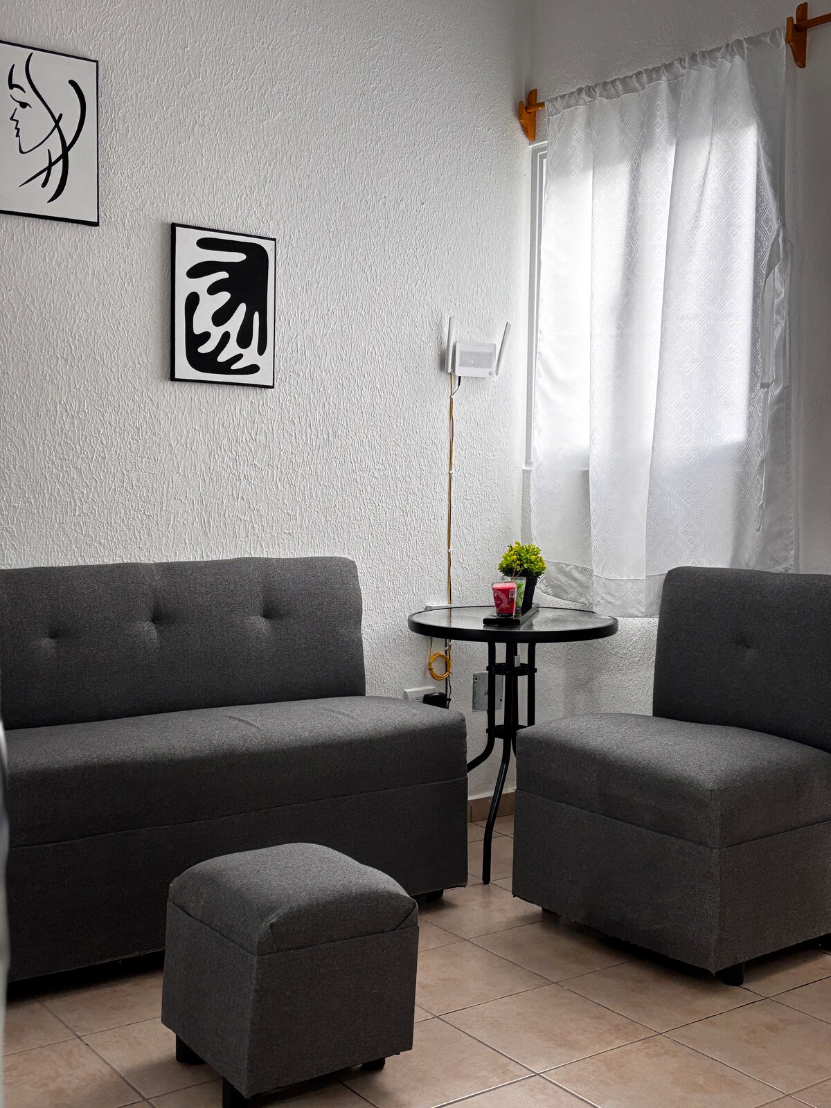 Villa de Vientos, nel cuore di Apaneca, affascina a prima vista con il suo giardino interno primaverile in cui convergono tre appartamenti. Indipendenti, attrezzati per i dettagli e con il proprio bagno, tutti offrono comfort, privacy e tutto ciò di cui hai bisogno per sintonizzarti sulla natura, sulla tranquillità del borgo e trascorrere un soggiorno indimenticabile. L'appartamento 1, con una camera da letto e uno spazio multifunzionale con cucina e sala da pranzo, può ospitare 4 persone e offre un divano letto nel soggiorno.