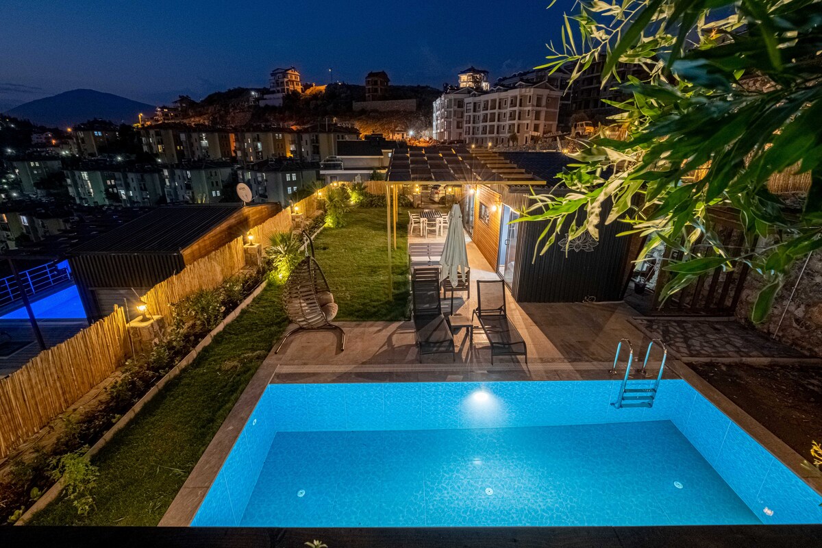 Siediti e rilassati in quest' oasi di quiete ed eleganza. Le nostre minicase per 4 persone ti offrono opportunità di vacanza indimenticabili. In auto: Oludeniz 15 minuti A 15 minuti dal centro di Fethiye Spiaggia di Calis: 12 minuti Stazione degli autobus di Fethiye: 10 minuti Aeroporto di Dalaman: 1 ora C'è un barbecue, un ferro da stiro e un asciugacapelli. Ogni unità ha una piscina privata e un giardino. La pulizia della piscina viene effettuata regolarmente.