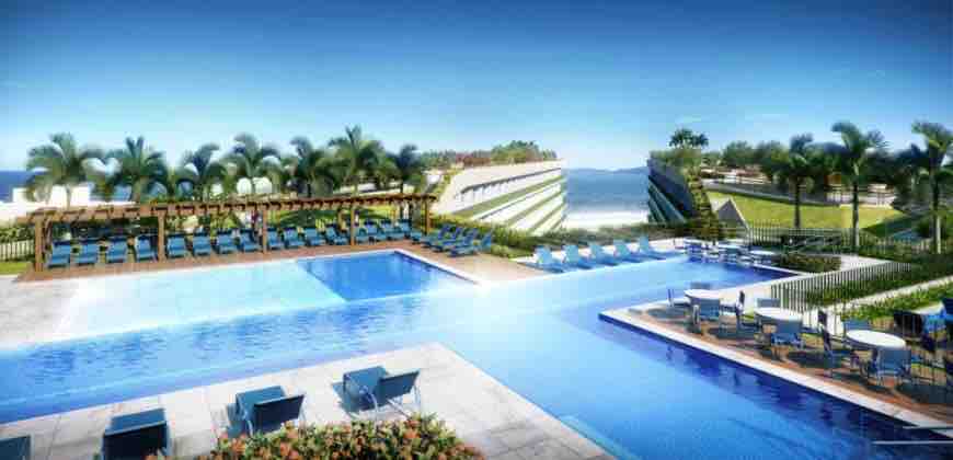 Appartamento di 95 m² nel condominio Reserva DNA di fronte al mare a Praia Grande a Ubatuba, con infrastrutture per il tempo libero e viale commerciale, arredato per un massimo di 4 persone, contenente: Salotto con 3 posti a sedere - cucina - sala da pranzo - salotto - aria condizionata. - Barbecue privato sul balcone - Garage per 1 veicolo. Area ricreativa con un concetto di resort: piscine, cinema, sale giochi, palestra, spa, sauna, sala giochi e molti spazi verdi.