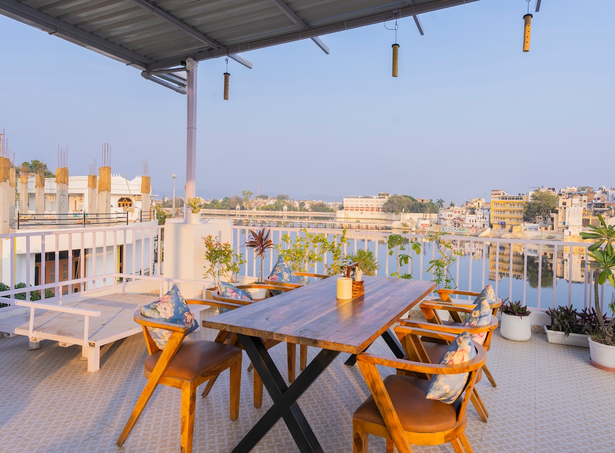 Questo alloggio Airbnb in posizione centrale offre una splendida vista sul tramonto e sul lago direttamente dalla tua camera. Grazie alle ampie finestre potrai goderti i tramonti dorati che si specchiano sul lago tranquillo. Questo spazio accogliente combina l'arredamento del Rajasthan con i comfort moderni, rendendolo il luogo perfetto per rilassarsi dopo aver esplorato le attrazioni vicine di Udaipur, come il Palazzo della città e i mercati locali.