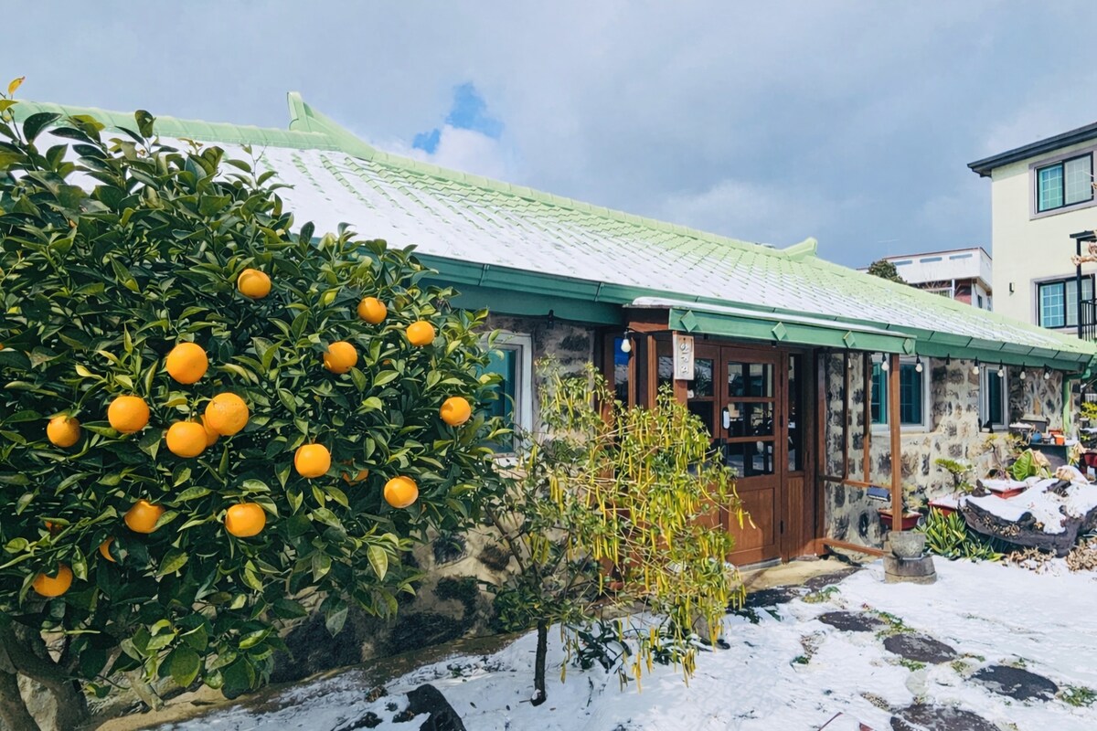 Si trova nel villaggio balneare di Sinchon-ri, Jocheon-eup, a est di Jeju-si. Il vecchio tetto di tegole e la casa in pietra di Jeju Guok, che esiste da più di 100 anni, sono stati conservati e l'interno è stato riparato da un falegname moderno. Nel piccolo cortile interno c'è un albero di cachi che è stato piantato molto tempo fa, e se si esce da una porta separata all'interno dell'alloggio, il cortile e il bordo del tetto sono collegati. Un piccolo spazio sotto forma di monolocale ti regalerà intimità. L'alloggio si trova sul retro dell'edificio in cui vive l'host, quindi solo un team può utilizzarlo privatamente.