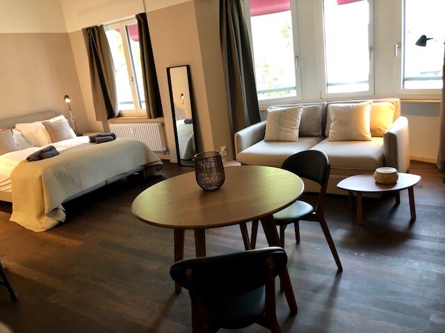 Benvenuti a StadLoft! Immerso nel cuore pulsante del Kreis 4 di Zurigo, il nostro moderno monolocale offre tutto ciò che serve per un confortevole e comodo soggiorno nel centro della città. Troverai un sacco di bar, ristoranti e negozi proprio a portata di mano e a 4 minuti a piedi dalle fermate del treno e del tram. Ogni monolocale è completamente arredato con arredi contemporanei e tutti gli elementi essenziali di cui potresti aver bisogno (asciugamani, asciugacapelli e prodotti per la cucina) per farti sentire a casa.