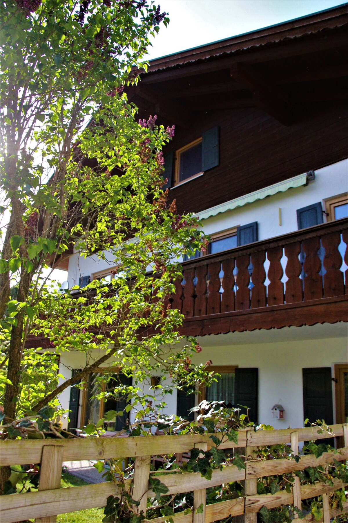 Benvenuti nella bella Alta Baviera! La nostra casa in legno massello di nuova costruzione e arredata in stile moderno si trova in una posizione tranquilla e soleggiata a Bad Kohlgrub. La funivia Hörnle è raggiungibile a piedi in 2 minuti. L'ampia terrazza e il giardino privato invitano a soffermarsi. In loco ci sono negozi, ristoranti e caffè. Innsbruck, Monaco e Augusta sono raggiungibili in circa un'ora. Saremmo felici di darle il benvenuto da noi come ospiti!