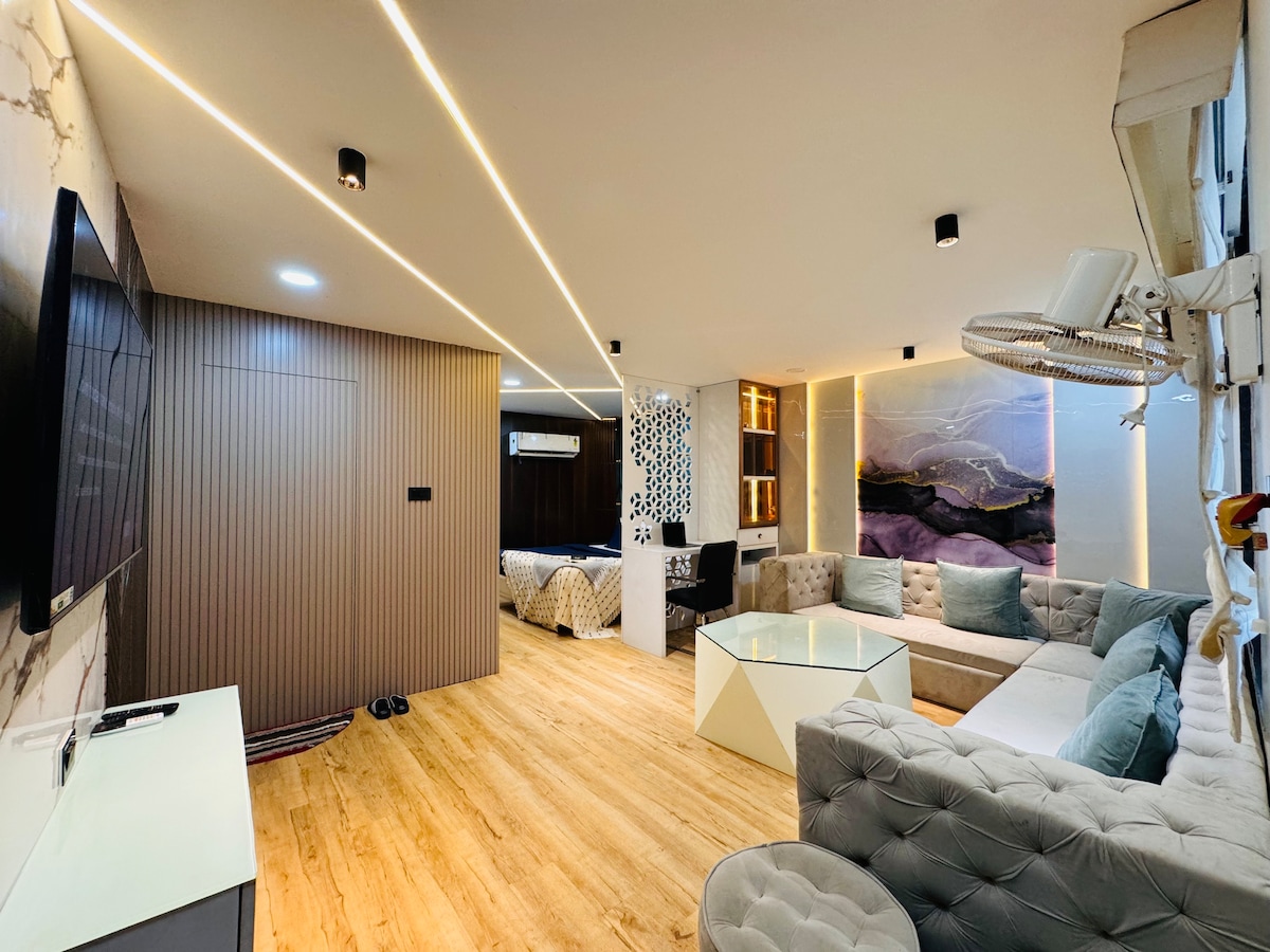 Aakāsh & Jal: appartamenti con una camera da letto e cucina, curati da Suhan Homes✨ Entra in un appartamento sereno con una camera da letto ispirato all'equilibrio cosmico del cielo o dell'acqua. Gli interni dalle tonalità acqua rilassanti, gli spazi ariosi e la luce calmante creano un rifugio per il riposo, la riflessione o la creatività. Goditi mattinate tranquille, momenti di consapevolezza e serate stellate dal tuo balcone privato. Perfetto per chi cerca pace, bellezza ed equilibrio, dove il cielo sussurra calma e l'acqua scorre con grazia.