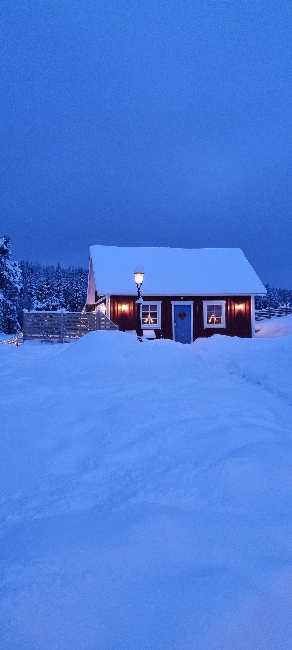Take a break from everyday life this winter and relax with family or friends in our cozy cabin. The surroundings feature a lake, lush forests, and beautiful natural pastures, creating the perfect setting for delightful winter walks in the crisp fresh air. For those interested in winter sports, the charming small town of Ulricehamn (just a 20-minute drive away) offers both downhill skiing at Ski Hike & Bike and cross-country skiing at Lassalyckan, an official Vasaloppet center.