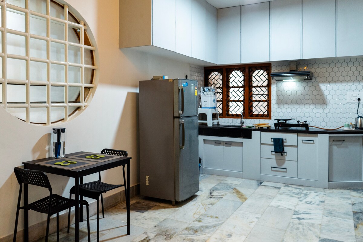Vivi l'esperienza di vivere nel cuore di Koramangala nel nostro elegante attico moderno con - Una spaziosa terrazza all'aperto, perfetta per un caffè mattutino o un cocktail serale. - Una cucina attrezzata con * Posate, piatti e bicchieri * Padelle da cucina * Piano cottura elettrico * Bollitore per l'acqua calda * Friggitrice ad aria * Frigorifero * Tostapane * Frullatore - Interni accoglienti * Letto matrimoniale king size * Tavolo da lettura * Tavolo e sedie da giardino * Sedie a bracciolo * Banco da bar e sedie - Ideale per * Coppie * Viaggiatori singoli