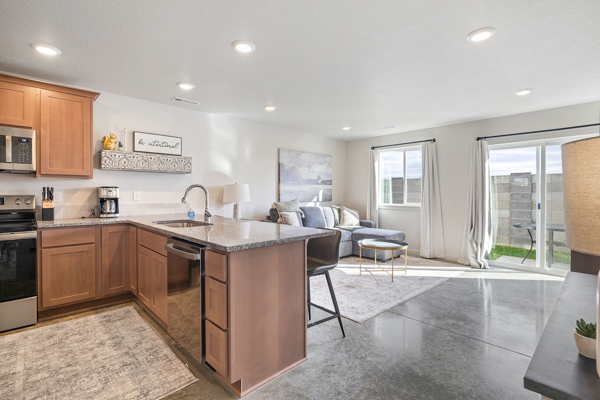 Appartamento al primo piano di nuova costruzione. Questa spaziosa unità con 2 camere da letto dispone di elettrodomestici in acciaio inossidabile, piani di lavoro in quarzo, forno a microonde, macchina da caffè Keurig, ferro da stiro, lavatrice/asciugatrice e parcheggio in loco. Situato in posizione strategica rispetto al centro di La Grande, alla Eastern Oregon University e al Grande Ronde Hospital.