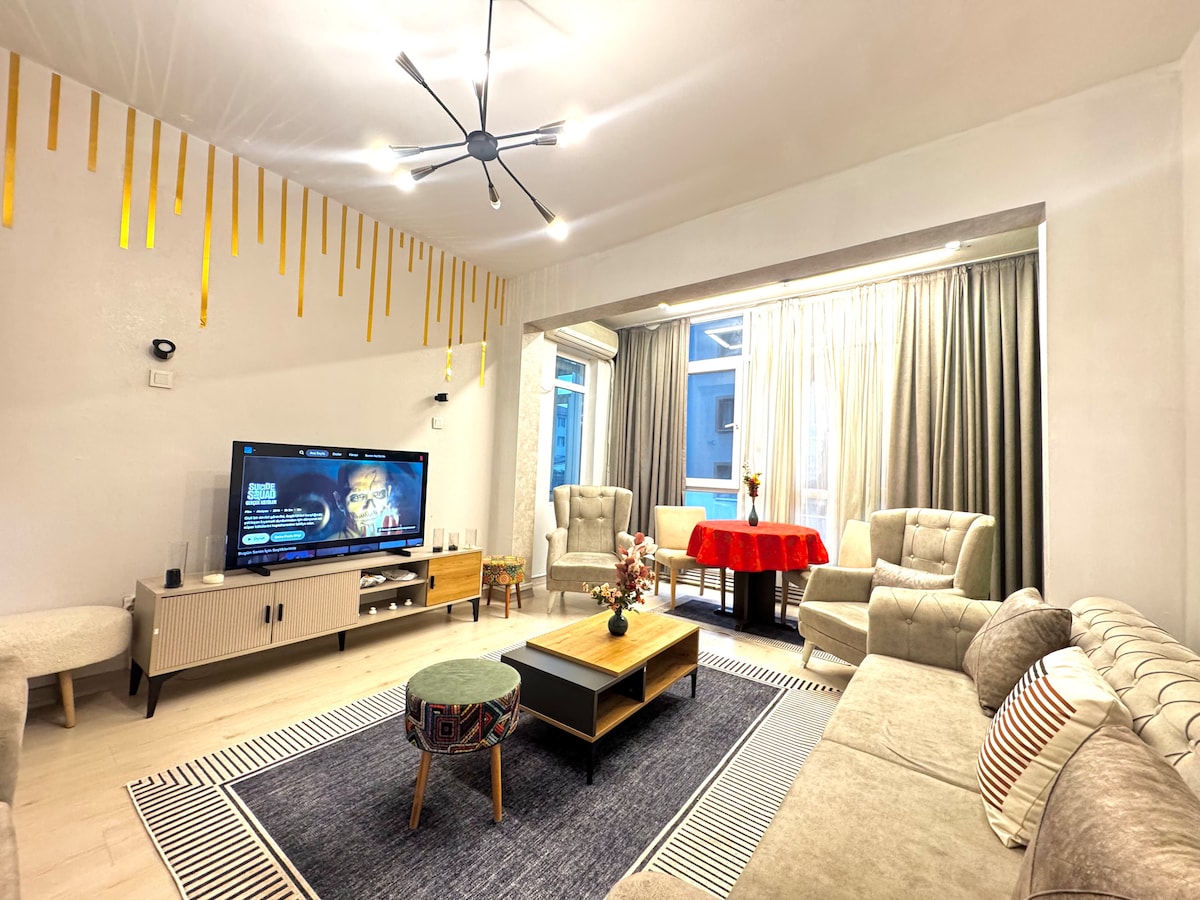 Posizione centralissima Spazioso e confortevole È appositamente progettato e attrezzato. È dotato di tutte le attrezzature domestiche necessarie, infissi, ecc. Comunicazione affidabile 24 ore su 24 5 minuti a piedi per la metropolitana Grande mercato a catena di fronte alla struttura e pasticceria/panetteria all'ingresso Aria condizionata, WiFi e trasmissioni satellitari disponibili Adatto a famiglie numerose Vista sulla città Accesso alla struttura protetto da password Si applica un elevato livello di pulizia e igiene Ci sono molte attività sociali e servizi nelle vicinanze