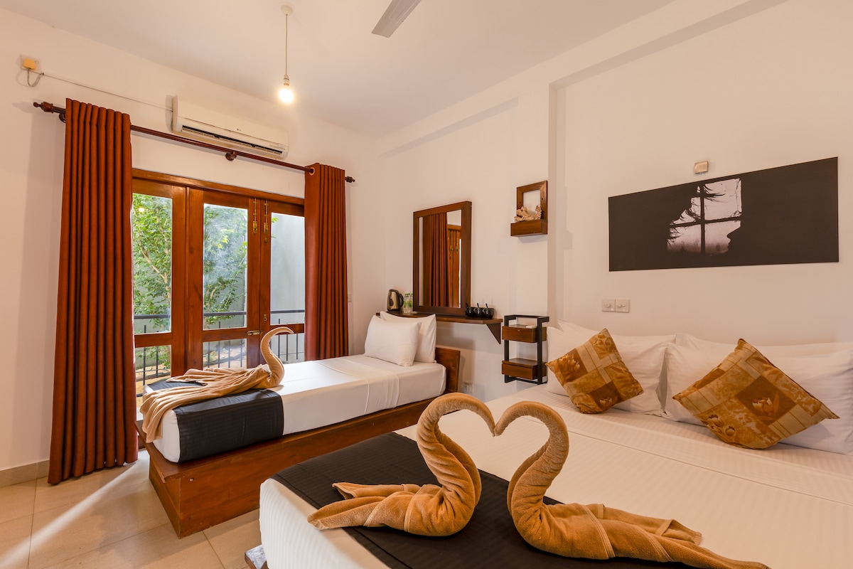 Benvenuti nel cuore di Mirissa! Il nostro accogliente hotel minimalista vi offre l'oasi perfetta a soli cinque minuti a piedi dalla splendida spiaggia. Le nostre camere sono state accuratamente progettate per offrire un soggiorno rilassante e confortevole. Godetevi la tranquillità e il relax sul vostro balcone o sulla terrazza. Un luogo perfetto per coppie e viaggiatori solitari. Il nostro alloggio è situato in posizione ideale per esplorare i ristoranti e i negozi circostanti.