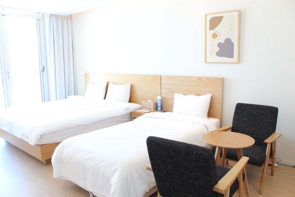 1. 조식(도시락) 주문 가능 (숙소 예약 시 주문 또는 전날 18시까지 주문 가능) 아침 7:30~ 9:00 사이 각 호실로 배달 2인 기준 15,000원 비용 추가 (치아바타 샌드위치, 수제 요거트, 샐러드). 2. 호텔 앞에는 시원한 바다가 뒤에는 이순신 공원이 있어서 자연과 함께 휴식을 취할 수 있습니다. 또한 인근에 문화 공연장인 '예울 마루'와 예술의 섬 '장도'가 조성되어 있어서 문화 생활과 여유를 동시에 누릴 수 있는 호텔입니다. 여수에서 짧게는 1박 2일부터 일주일 살기,한 달 살기, 일 년 살기 등 장기 숙박으로도 큰 부담 없이 이용하실 수 있는 가성비 높은 숙소입니다. 3. 취사 불가 많은 이용 부탁 드립니다.
