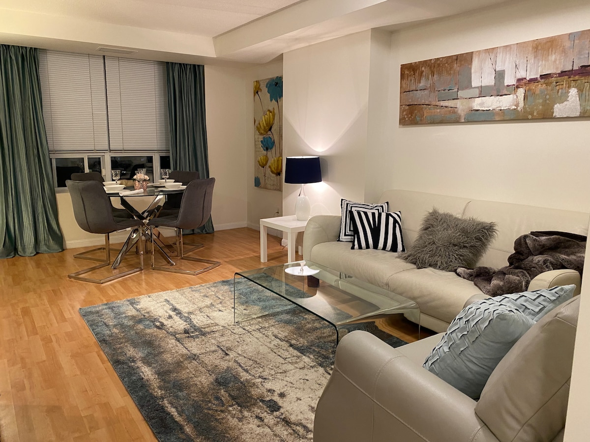 Intero appartamento elegante e moderno nel cuore del centro di Toronto! Raggiungi A PIEDI le principali attrazioni di Toronto: → CN Tower / Acquario / Rogers Centre (7 minuti) → Scotiabank Arena (2 minuti) → Union Station (2 minuti) Lungomare del→ lago Ontario (3 minuti) → Accesso diretto al PATH sotterraneo In evidenza: Accesso → sicuro all'edificio con portineria 24 ore su 24 → Ampio balcone con set da patio Caminetto → elettrico → Lavatrice + asciugatrice con detersivo →SOGGIORNI MENSILI: accesso al centro fitness, alla piscina e alla sauna!