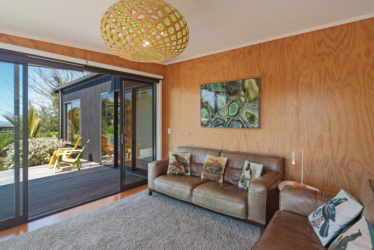 A classic kiwi beach bach. We welcome you to come stay on the boundaries of the Abel Tasman on our farm and amongst the nature and soak up the view of the Abel Tasman Foothills and Tasman Bay Ocean views. This is an old school 1 bedroom Bach with an amazing kitchen and living room centred round a cozy fireplace. Stay includes free unlimited Wifi with full kitchen and bathroom. The main reception is just 300m away for any help or local advise. The legendary Park Cafe is just down the road 100m.