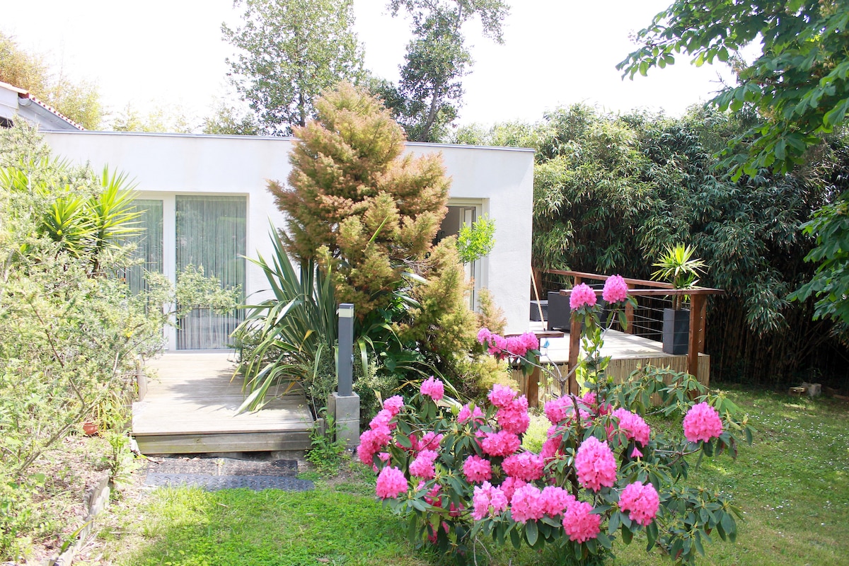 Nuova casa di 100m2 tra mare e golf, molto luminosa , vista sul campo da golf di Biarritz , spaziosa con due camere da letto che si trovano a cinque minuti a piedi dall'oceano, dove è possibile cenare in molti ristoranti. Negozi in fondo alla strada. Parcheggio e giardino di 3500m2 atmosfera balinese/ giapponese con sdraio, angolo tchill, barbecue , braciere ...atmosfera zen garantita:)