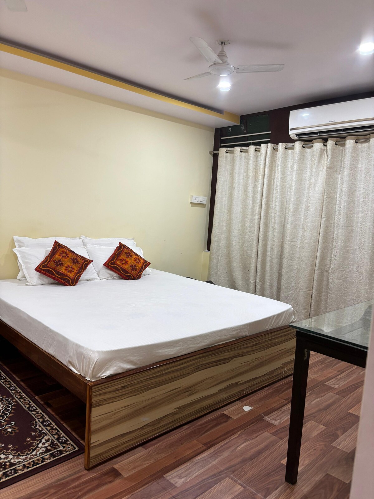 Serene Varanasi Luxury Homestay, a tranquil retreat in lush greenery. Featuring two interconnected bedrooms, this space comfortably fits families or small groups. Enjoy affordable luxury with a dedicated workspace, AC, and Wi-Fi. Perfect for families, remote workers, and spiritual seekers looking for a peaceful base in the holy city.